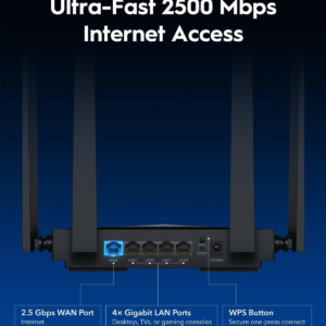 • 2.5G WAN port and 4 × gigabit LAN ports offer high-speed data transmissions.